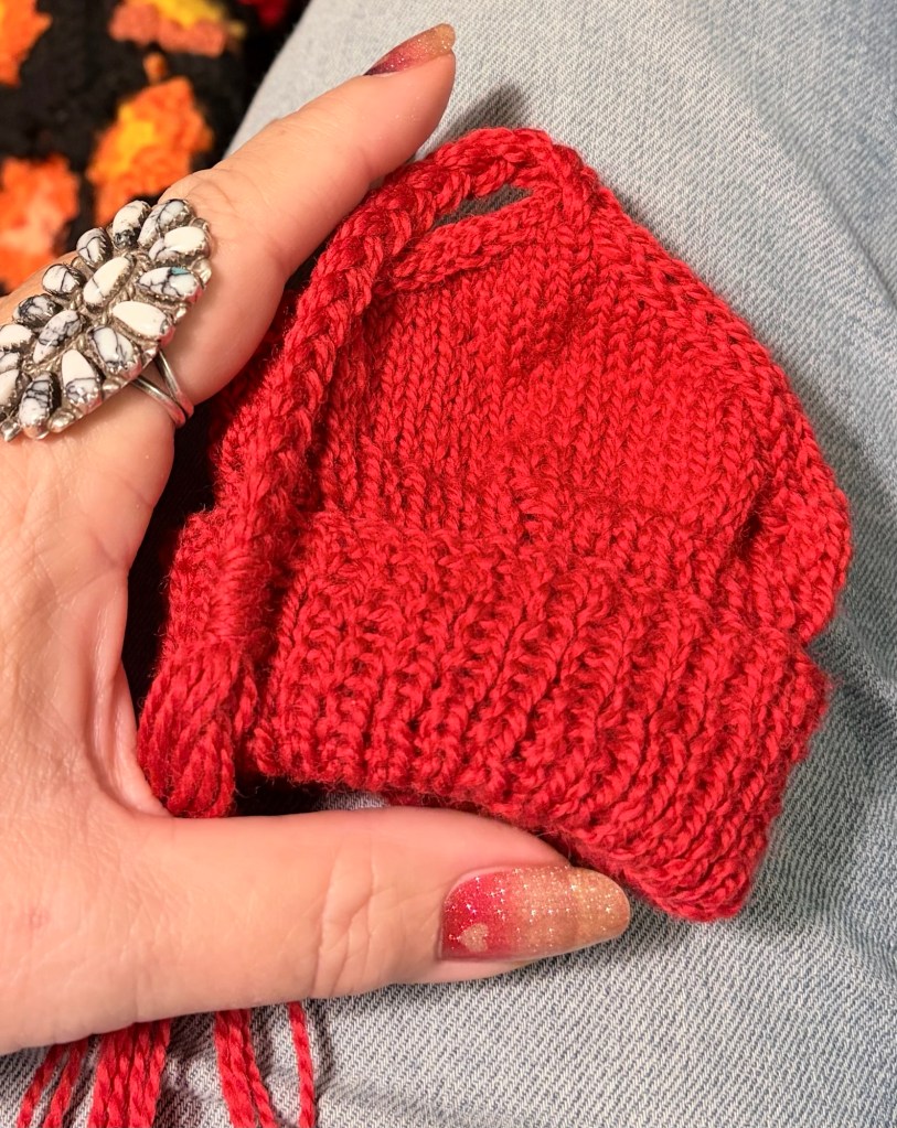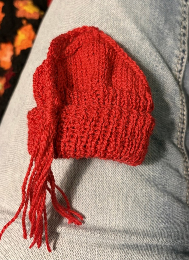 I noticed last night that I was feeling “antsy” when I was watching Deep Space Nine with no project in my hands. I’d finished the red hat and both days of February in the other project. I realized I was using the rhythmic knitting and crochet stitches to self regulate. I guess that’s what I’ve done my whole life, with all my lifetime of anxiety. At least my compulsion occasionally results in something useful (or yet another partial project).