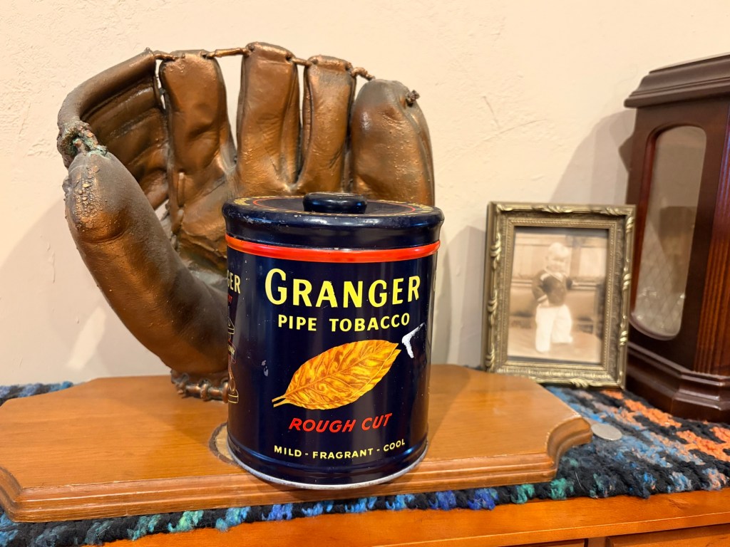 Next we went to the ZX Made in Texas shop and browsed. There I was delighted to find a can that once held Granger pipe tobacco. It reminded me so much of my dad, who always smoked a pipe with that tobacco. I got it and put it next to Dad’s bronze baseball glove and his baby picture.