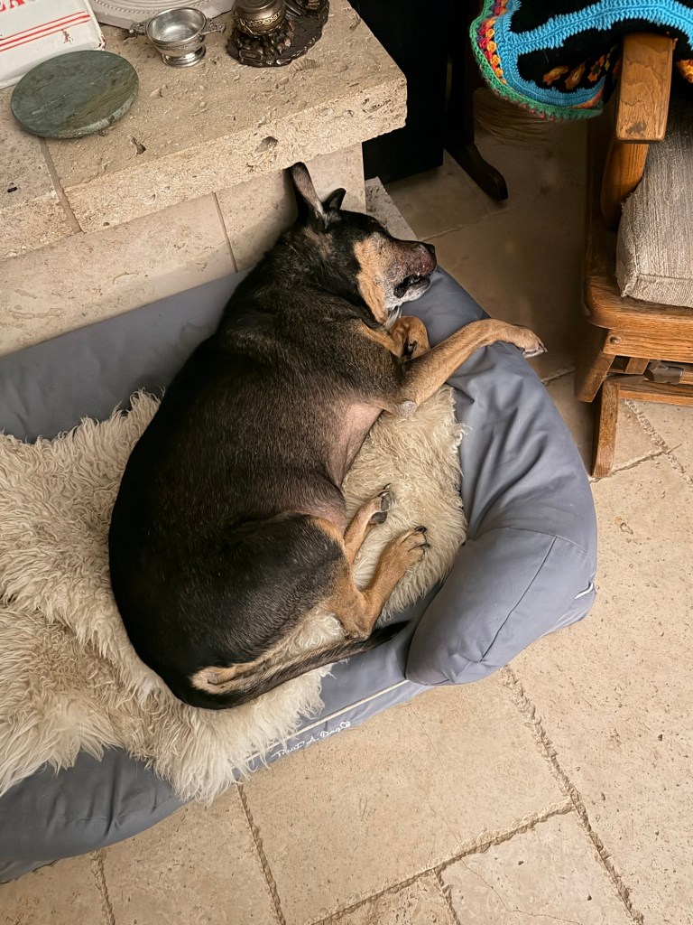 I think I’ll take a cue from Harvey, seen here sleeping off a snake bite. He’s ok now.