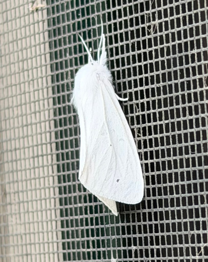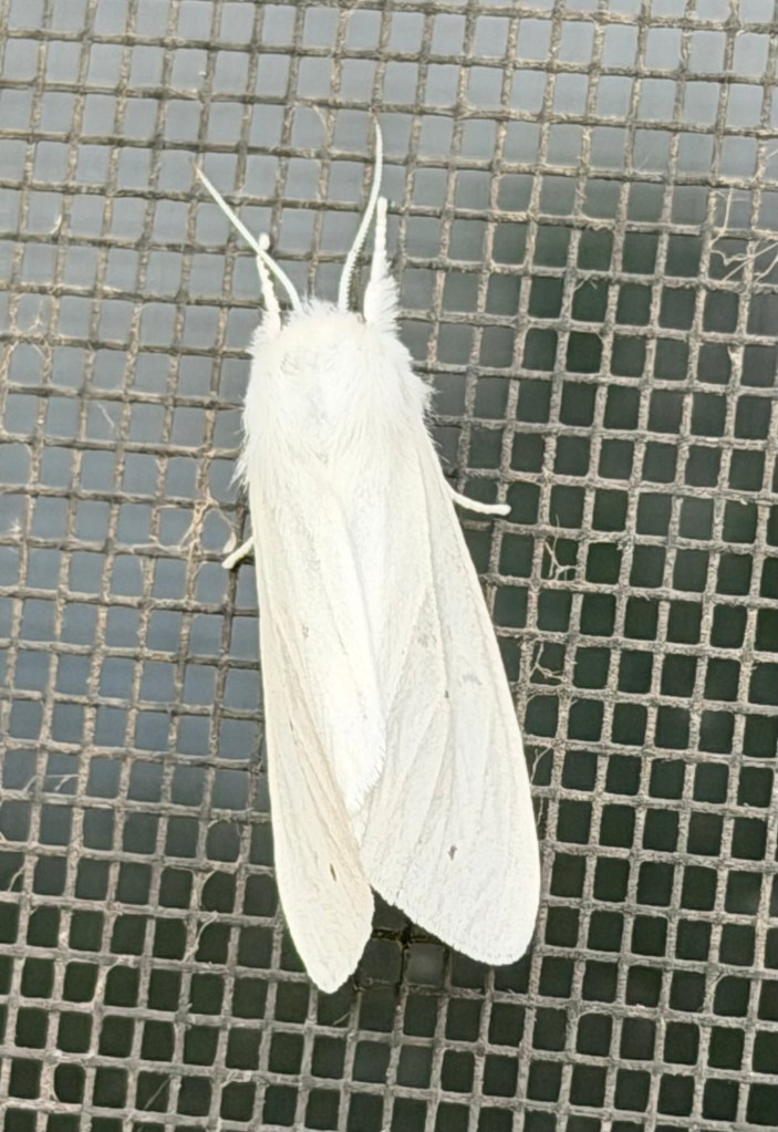 It was a good birding day, which always seems to happen after rain. I’m waiting for the sparrows to go, since the swallows are back. My most exciting sighting today was this tiger moth. I’m not quite sure which species, but I’m hoping it’s an “agreeable tiger moth.”