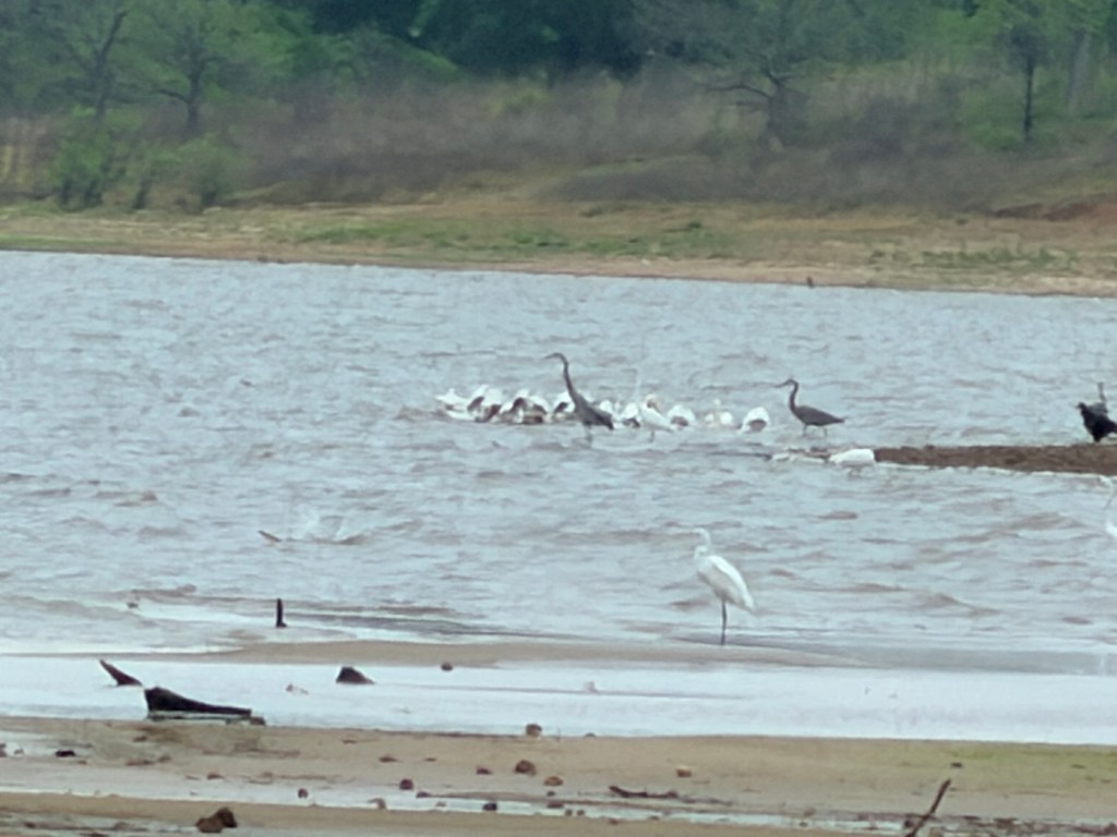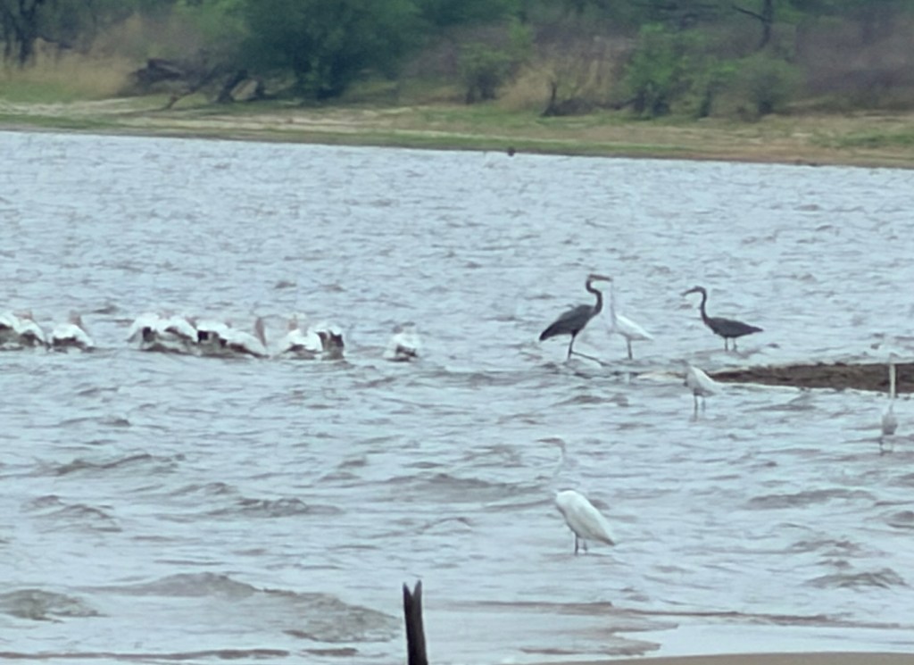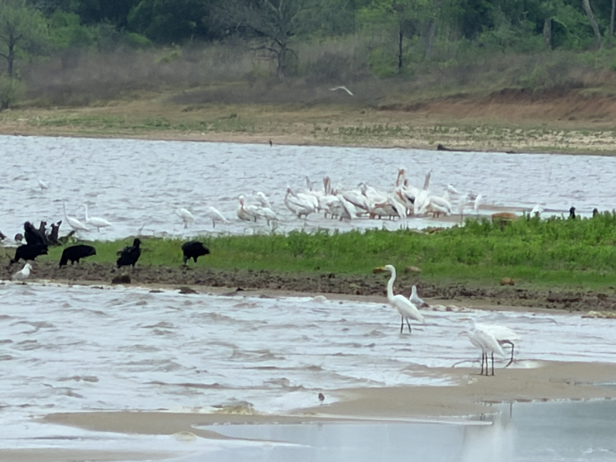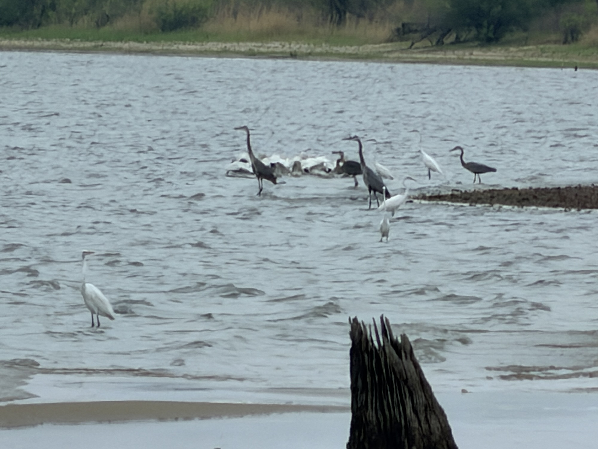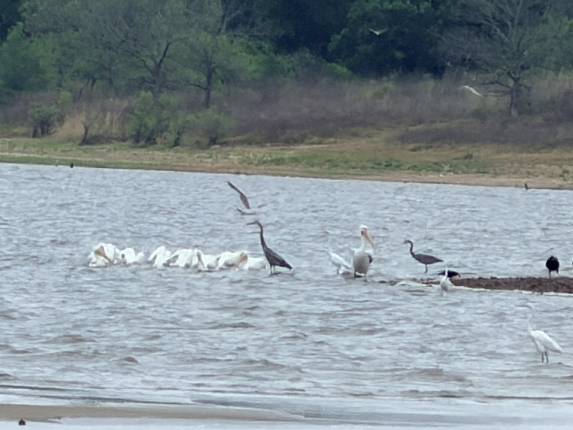 The last day of camping didn’t lend itself to hiking, since it kept raining off and on. So I did more friend chatting and snuck over to the shore of Lake Somerville to see if I could find any of the birds I hadn’t seen yet. I knew those Pelicans had to be somewhere!