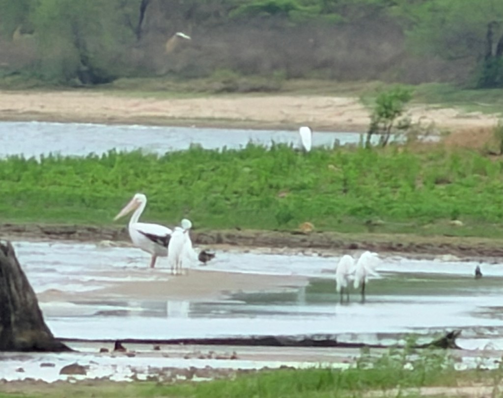 I finally got close enough to see the distant birds (binoculars were in the motor home). Yes! There were some American White Pelicans! They haven’t all migrated (I have seen some flying over).