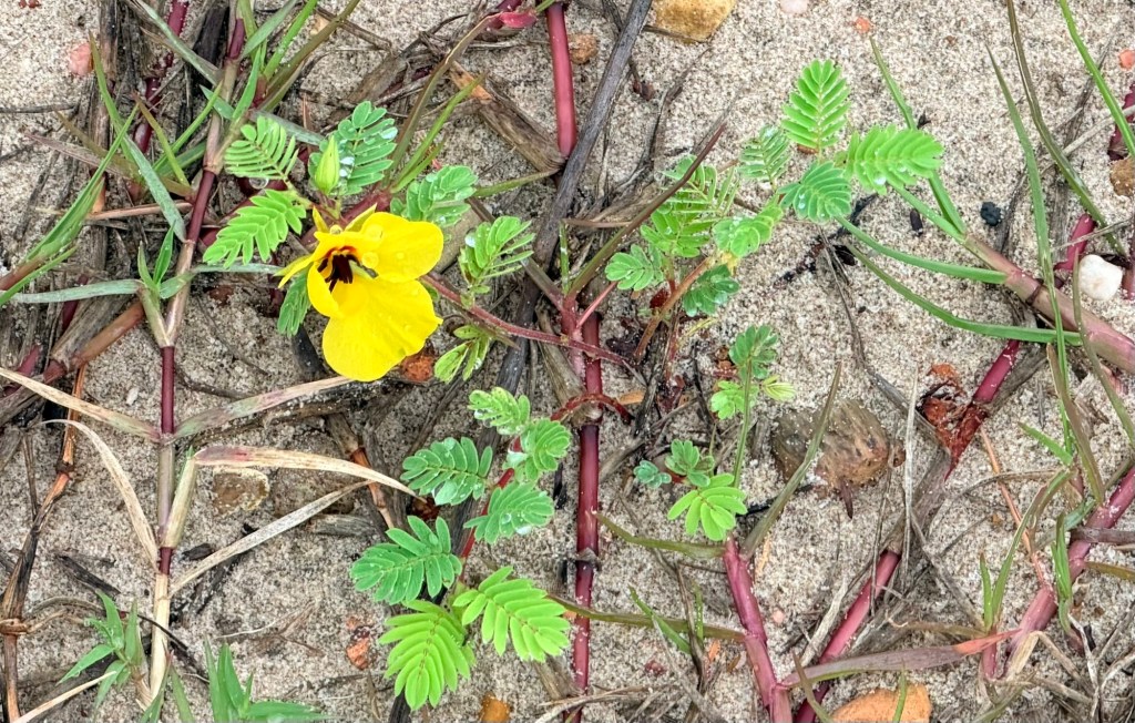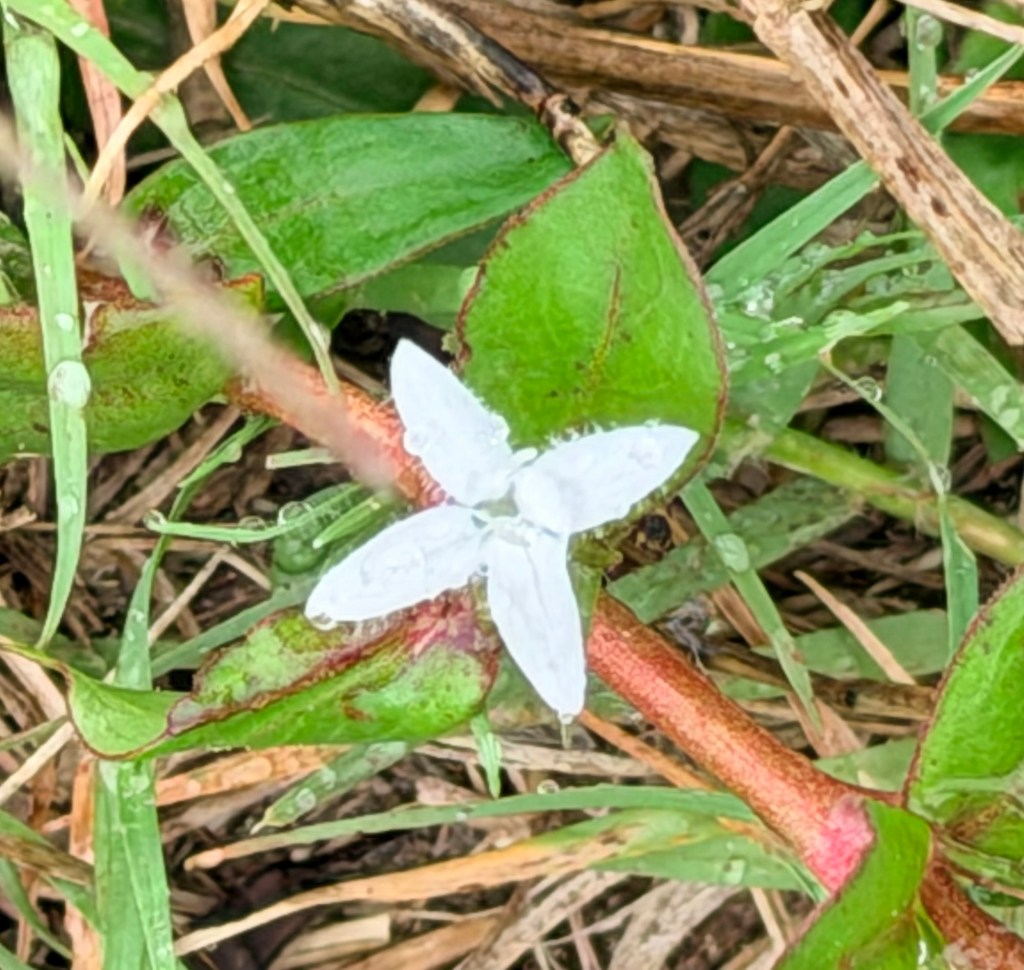 Buttonweed Sandy land Bluebonnet Pale Smartweed (it’s usually pink)Fragrant Flatsedge Partridge PeaStemless SpiderwortCursed Crowfoot