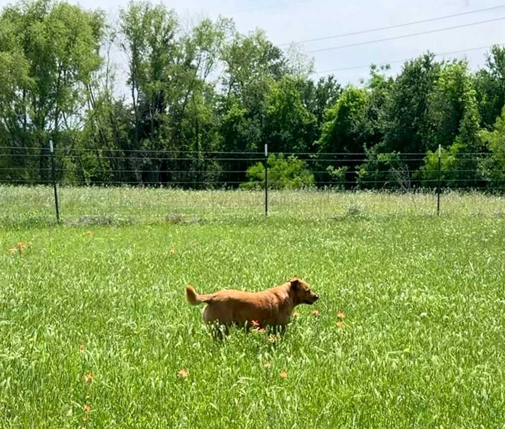 Of course, I also greeted the dogs. Here’s Penney indicating she’s glad I’m back.