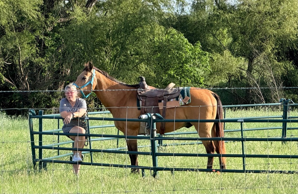 The time spent with the horses is so good for me. Dusty and Spice are always so friendly and well mannered. We now have a happy, balanced herd. I’m glad to now have Kathleen’s help with them, too. It’s helped me move forward.