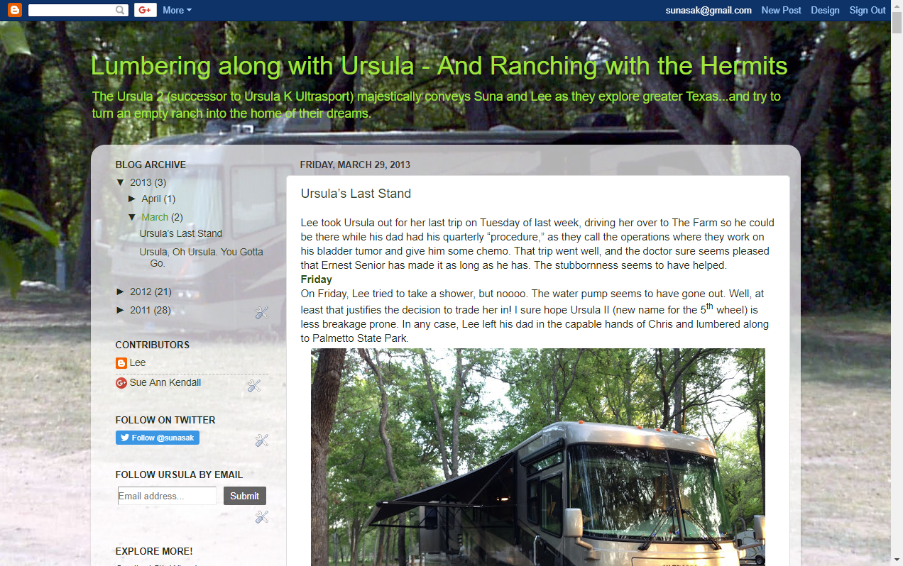 When we got the ranch, the RV-ing ended, so that cute little blog died off. I switched to the Hermits’ Rest Facebook page until last April, when I wanted to write more details.