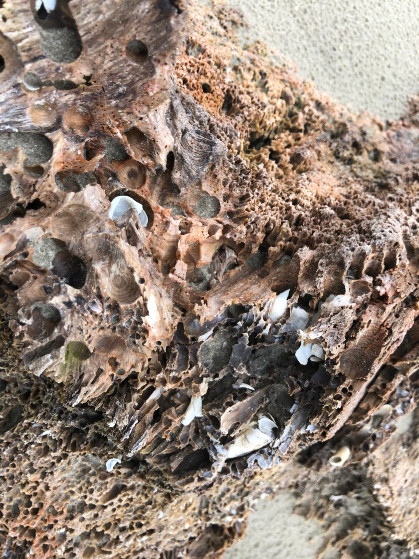 One particular piece of wood that had been in the water enough for barnacles to grow on it really seemed beautiful. Such a mix of land and sea.