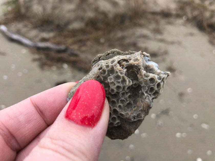 I did find a small piece of coral, too. I have to say these and the oysters in the bay kept distracting me from my bird and plant recording duties, but that’s okay. I had time to enjoy all the gifts the ocean and wetlands gave me.