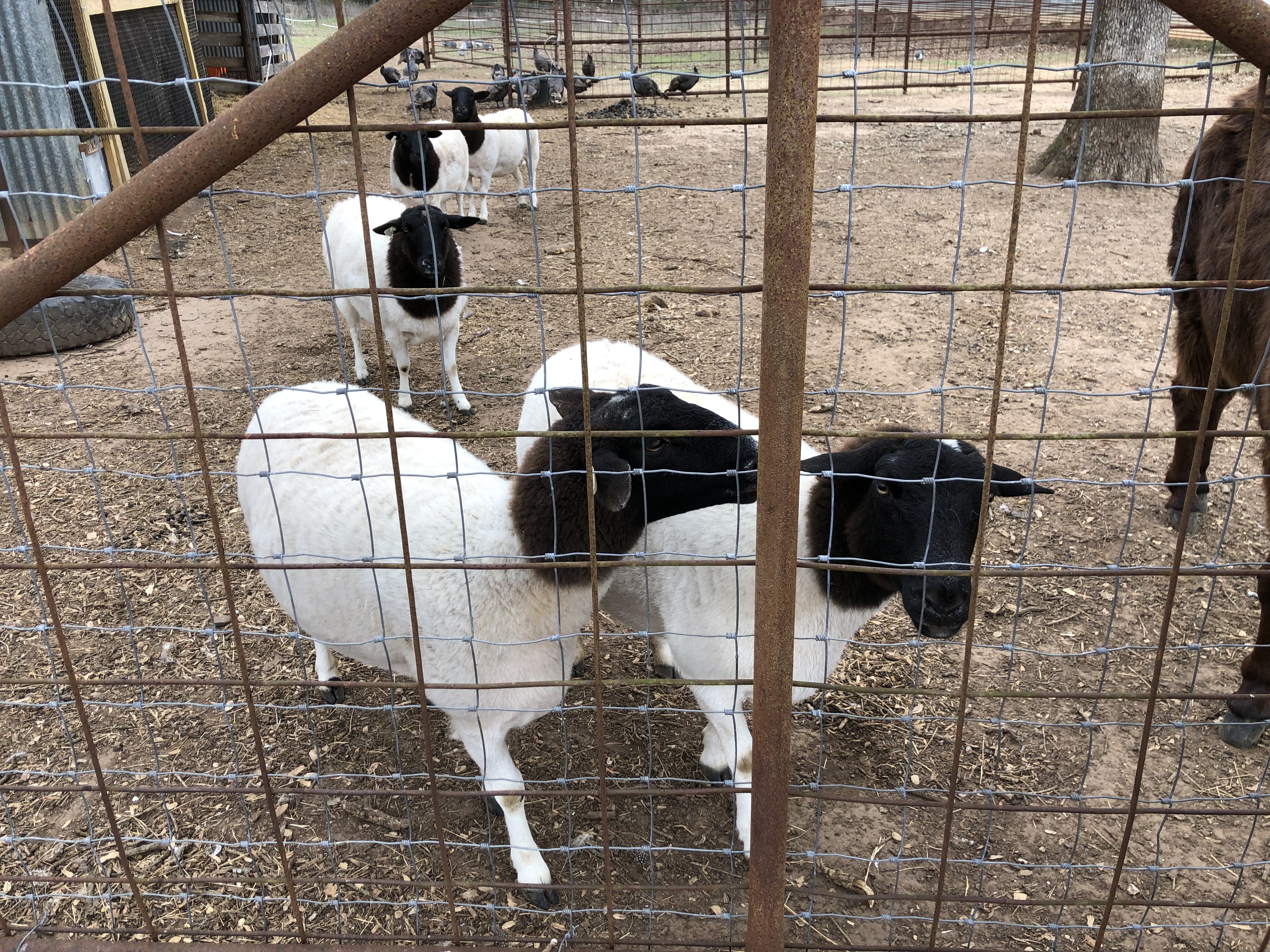 Immediately we became little kids, giddy with excitement. Look at the guinea fowl! Look at the Rio Grande turkeys, flying around (yes, turkeys CAN fly!). Look at the beautiful donkey! Look at the gorgeous sheep!