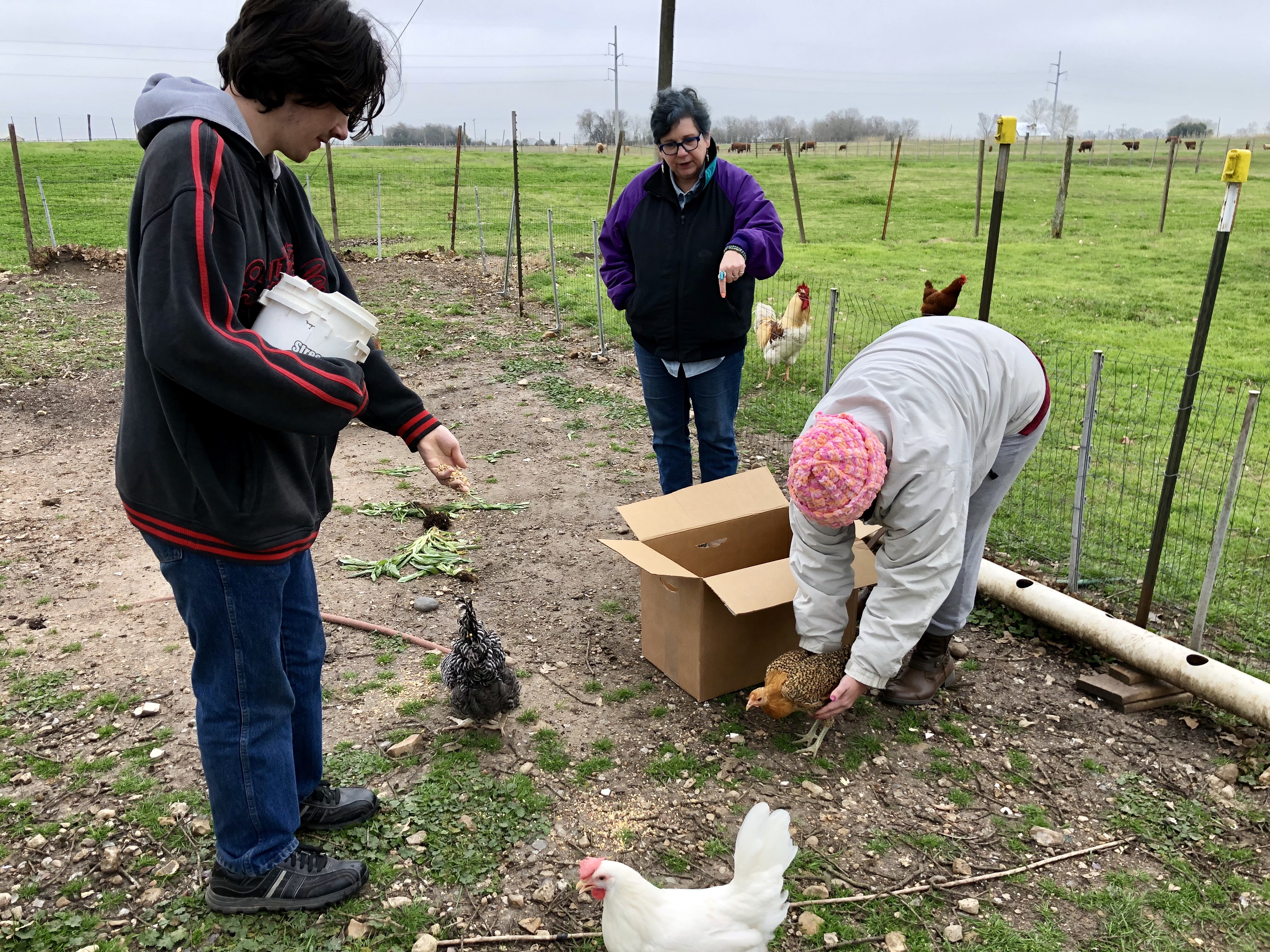 When we got home, we called in all the community to watch us release them. Mandi’s son, Seth, who feeds the chickens a lot, helped out, Sara came over with Spice, and even Lee drove by to see them!
