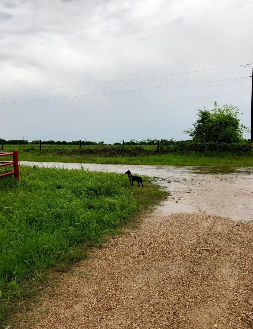 The flow was really strong heading toward the creek, which meant I was not surprised to see we have waterfront property again. The dogs loved running through the shallow parts.