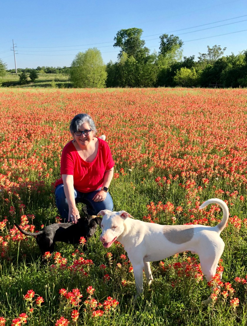 I went further down to try a different spot. By this time Apache was comfortable with the water, so he started playing. Sara noticed that, as he merrily splashed his face, he was sinking. So she said we’d better cross, which we did really well. When I got home I realized he’d gotten his belly muddy!