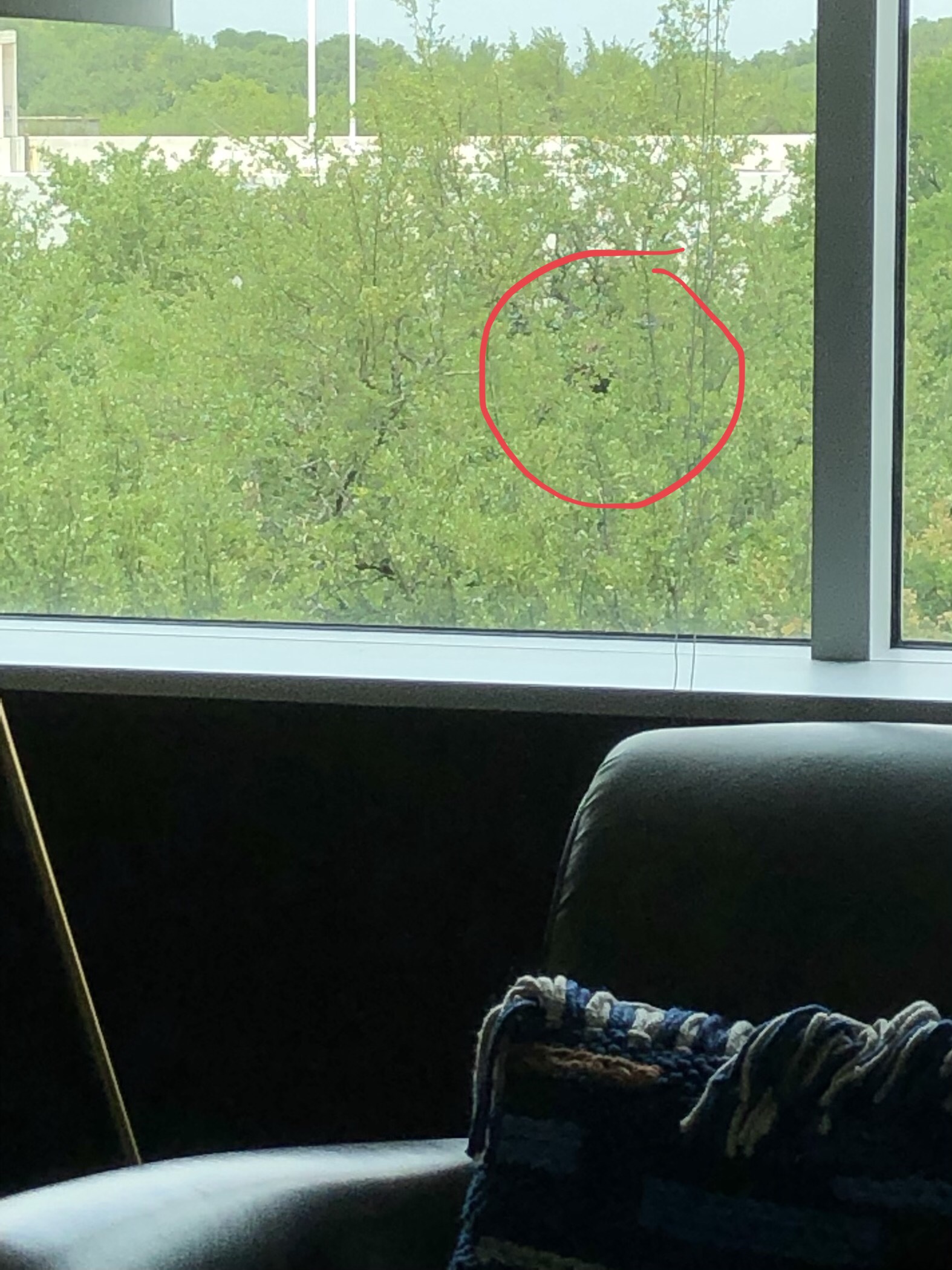 So, I’m not sure whether they got storm damaged or are moulting. They still fly just fine. And we THINK there may be babies in the nest, but we can’t see them. We just saw an adult act like he or she was feeding.