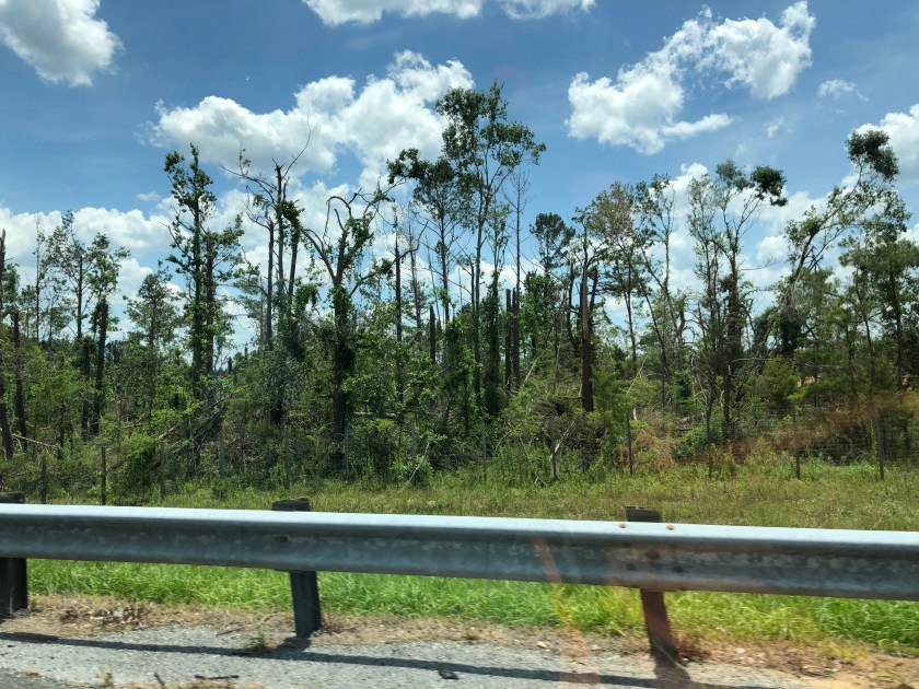 There was a somber section to the trip, when we passed through where Hurricane Alberto went through the panhandle of Florida. We had no words for what we saw for miles and miles: trees snapped off midway up their trunks; young trees completely bowed to the ground, but still alive; huge trees uprooted; highway signs mangled; many new mobile homes with piles of debris behind them.