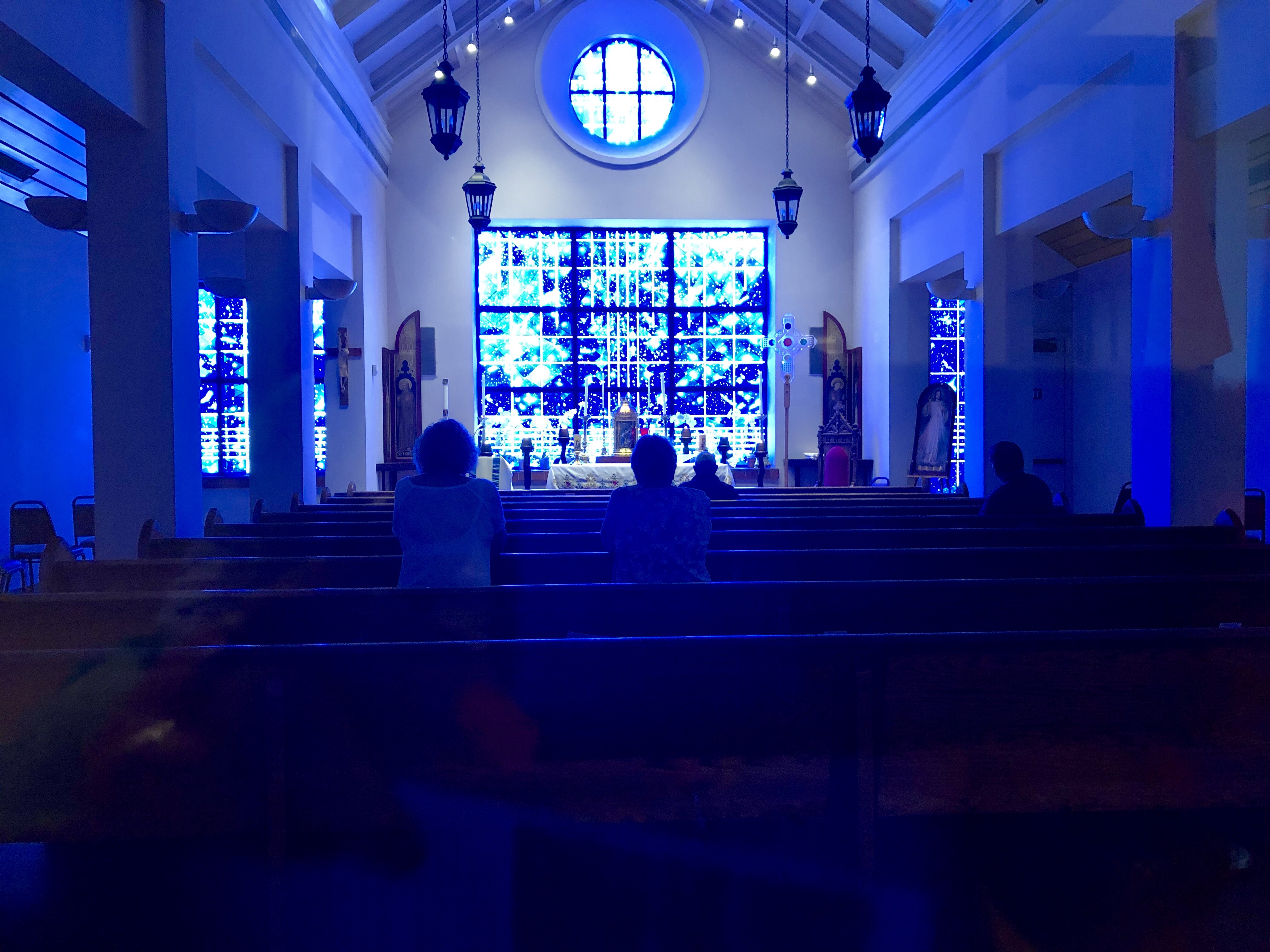 They’re installing a new pipe organ soon, so the main church is a bit bare. I can see that it will be amazing once installed. And speaking of amazing, the Day Chapel is perhaps my favorite worship area ever (and I’ve seen European cathedrals!). It’s all BLUE, because the stained glass is a representation of the Universe. Wow.