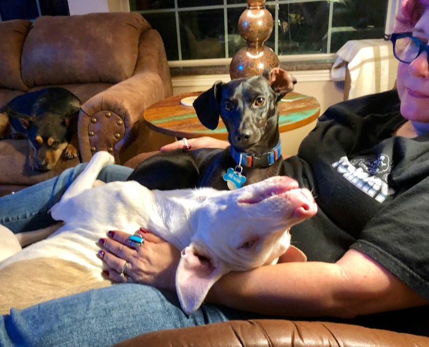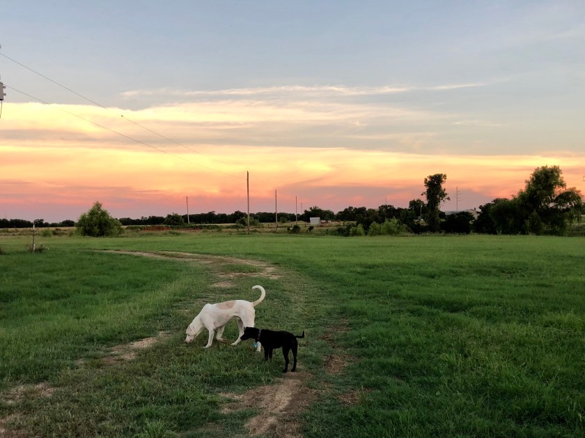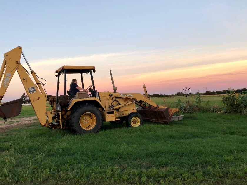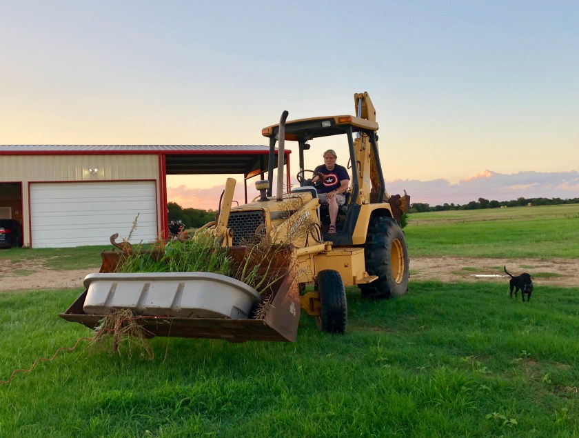 And we’ve been able to use the big ole front-end loader to rearrange the raised beds (he couldn’t mow between them where they were). The dogs enjoyed it, too.