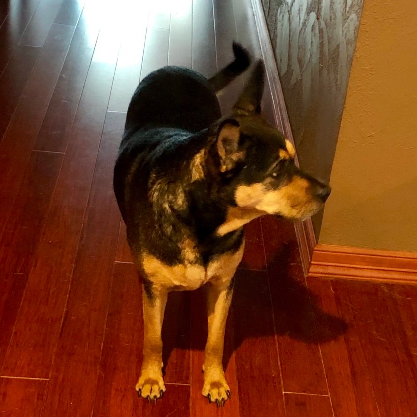 He seems a lot calmer now, and less prone to his growling habit. He only gets testy when Carlton gets too relentless in his play requests. He also enjoys running and playing with Vlassic, which provides us with hours of fun.