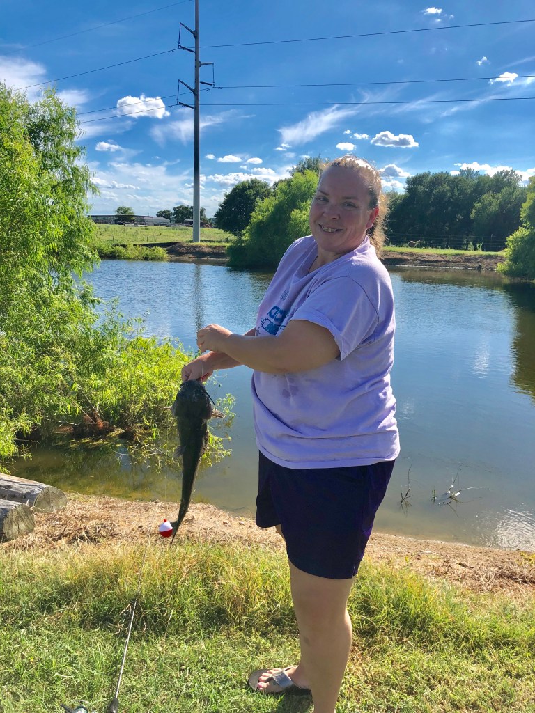 One actual fish was caught, by Mandi. She cracked me up going to get that big ole catfish in her flip flops and fancy nails. I got action shots, so I felt like quite the pro.