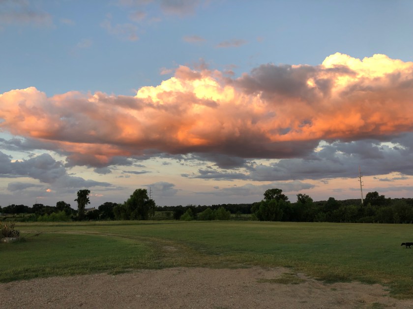 Fer sure, yesterday was really hot, and so was the day before, but it was certainly not without beauty and the potential for fun. I’m so glad the dogs pestered the heck out of me to go outside Saturday night, or I’d have missed a spectacular sunset. The one below is my favorite image, which I shared on Facebook, but I didn’t want blog readers to miss out.