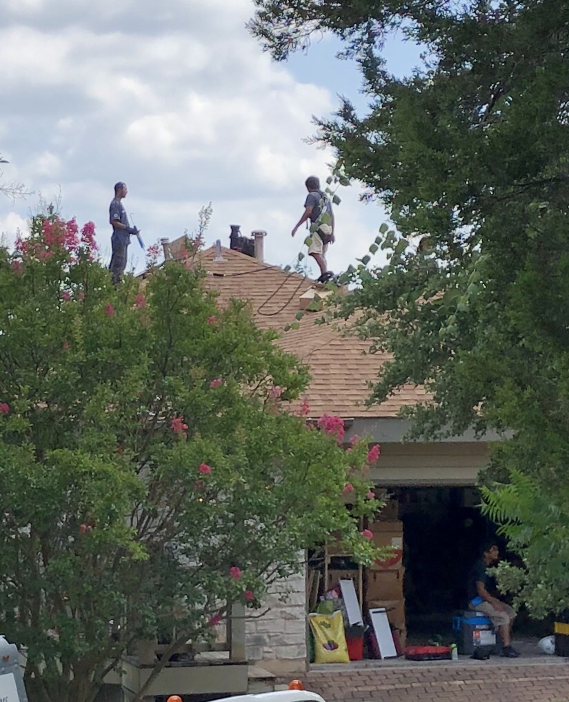 Other than some dog barking and drilling noises, it went just fine. The crew showed up around 9 am in a fancy truck and got to work. They were nice and polite and cleaned up after themselves. Ah. I think Anita survived okay, since I had to go into the office for meetings and she was in charge.