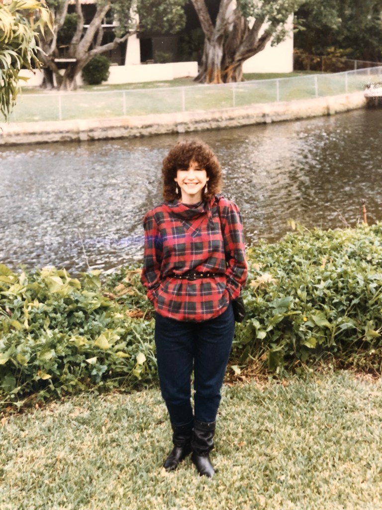 And here I am wearing a belt. I’m sure that’s why the photo was taken, because even back in my slimmer days, I was not a fan of belts. I’m in my sister Canova’s back yard in Miami, which was on a cool lagoon with iguanas. She had a huge avocado tree in front, too.