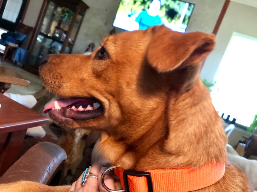 I kept going back to a dog called Izzy I’d been following at the Cameron pound. She isn’t spectacular to look at, just a plain reddish dog. So, no one has adopted her. Apparently her mom is a pug/dachshund mix, but the dad is an unknown Cameron roaming stud. She gets pug wrinkles when she’s concerned.