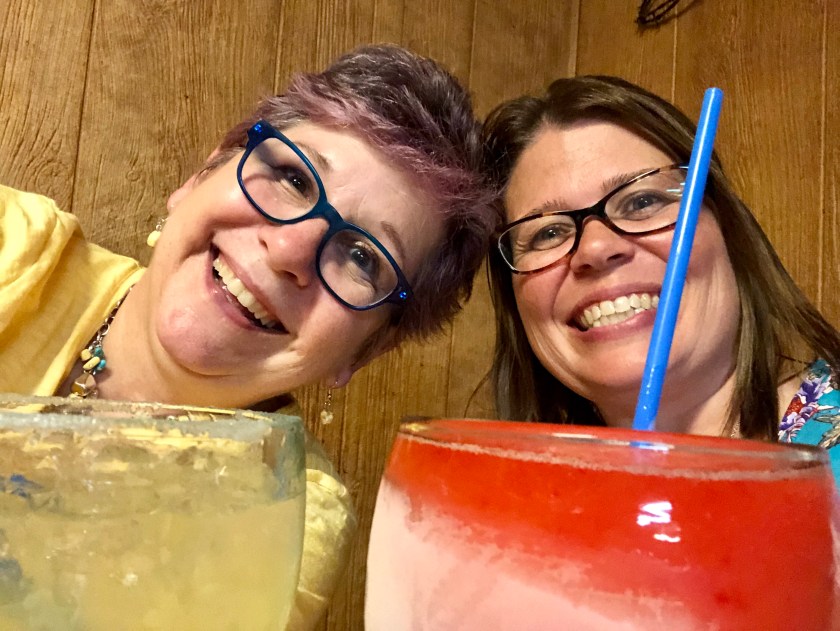 It was 102 outside, so by the time we got back, we desperately needed cold margaritas. Off we went to Casa Carrasco, where we saw Evie’s entire family and all enjoyed our food. Joe doesn’t eat Mexican food, but he seemed to like his giant chicken fried steak. Eva really loved hoochie shrimp, and said she’d never had anything like it before. We told her we thought Evie’s mom made it up.