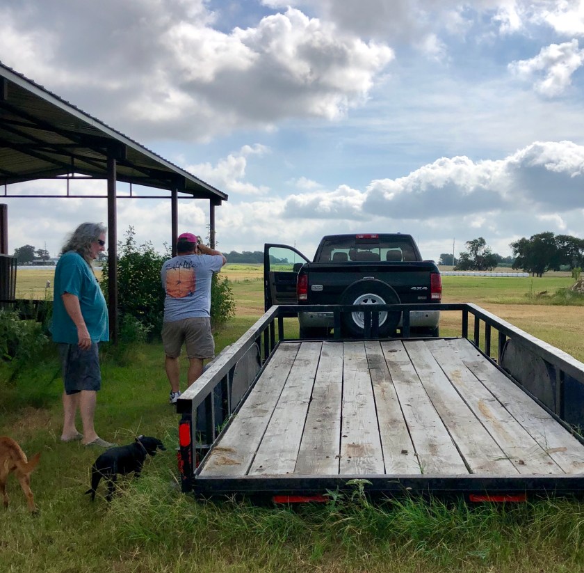 At last, Chris hooked up our big trailer to our truck, to take to Angleton to move some stuff out of Jim’s old house. I know it will be hot and humid, so we’re wishing them well.