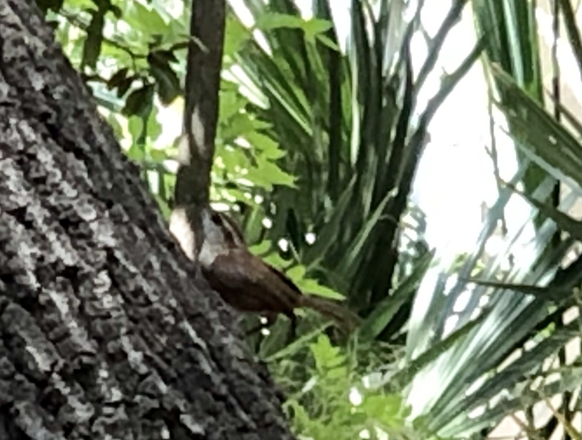 Those weren’t the only sounds I heard, though. There were Carolina wrens bopping all over the trees and bushes, too. I love to listen to them. Sorry for the poor photo quality. It was dark and the birds weren’t exactly posing for me.