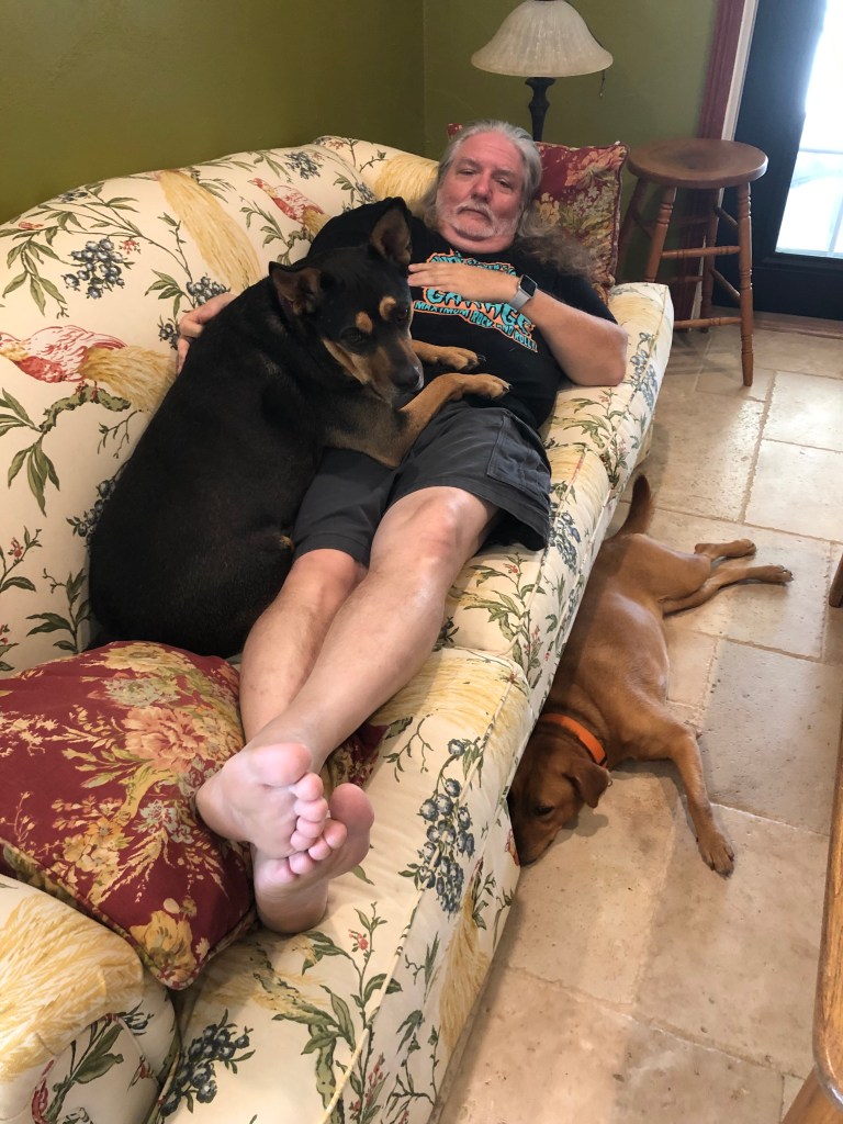 I’ve been enjoying the dogs as they all (minus Alfred) sleep on us at various parts of the day. Vlassic and Carlton like to form little circles inside my legs.
