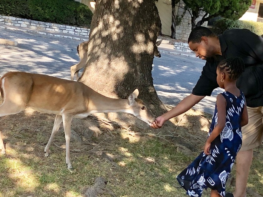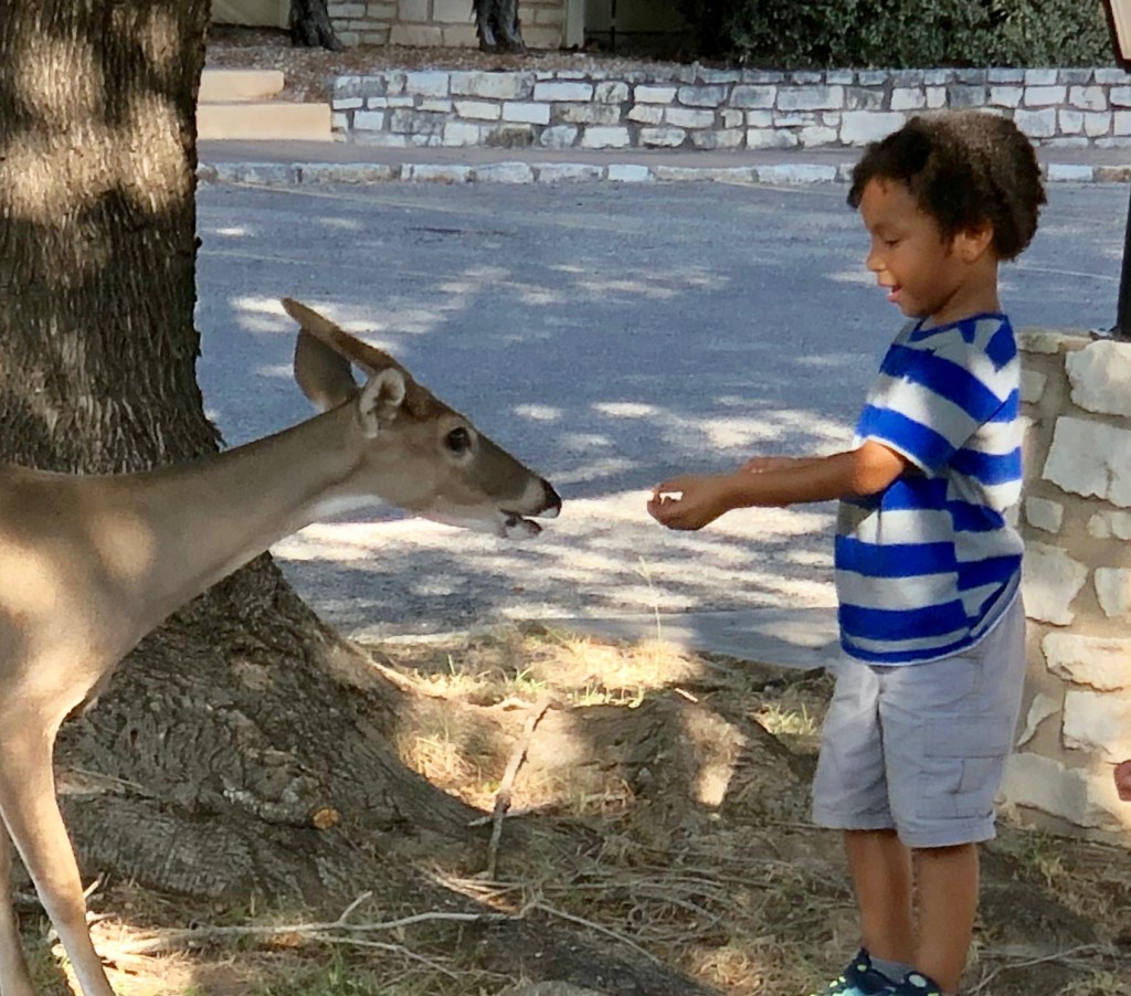 I really like this picture of the little boy and the deer, both with their mouths open. I’m glad they said I could share photos!