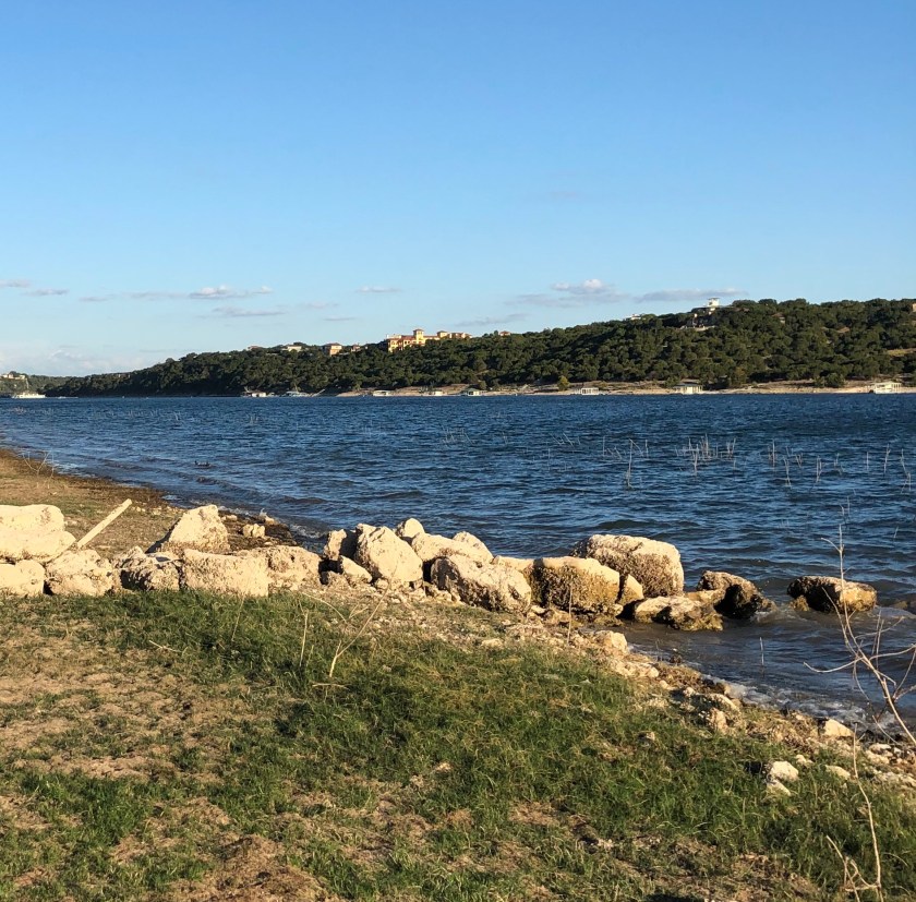 It’s in Lago Vista, an oddly endearing resort village on the north shore of Lake Travis. Well, it’s a condo all right. I think it’s the least charming one I’ve ever been in. It appears to be the same age as the Bobcat house, only with very few upgrades. (Bathrooms have been done, on a budget.)