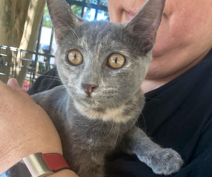 Our group brought two sweet dogs looking for homes, Henry and Fifi. The kittens Jean S. is fostering were also there, and darn, they are cute.