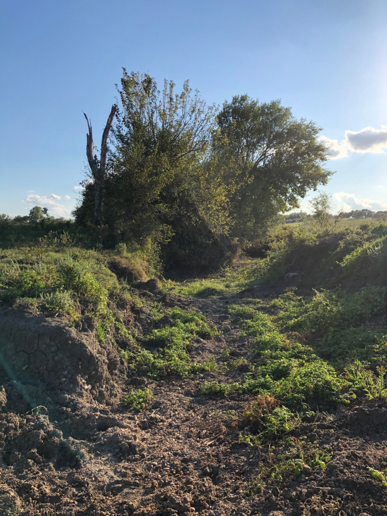 I hadn’t had a chance to show Kathleen what’s in the woods (mainly a lot of cedar elm and coral berry), so she had fun discovering the little stream (or where it would be if it rained more), then as we moved on, we saw the gate to nowhere, and other bottomland landmarks.