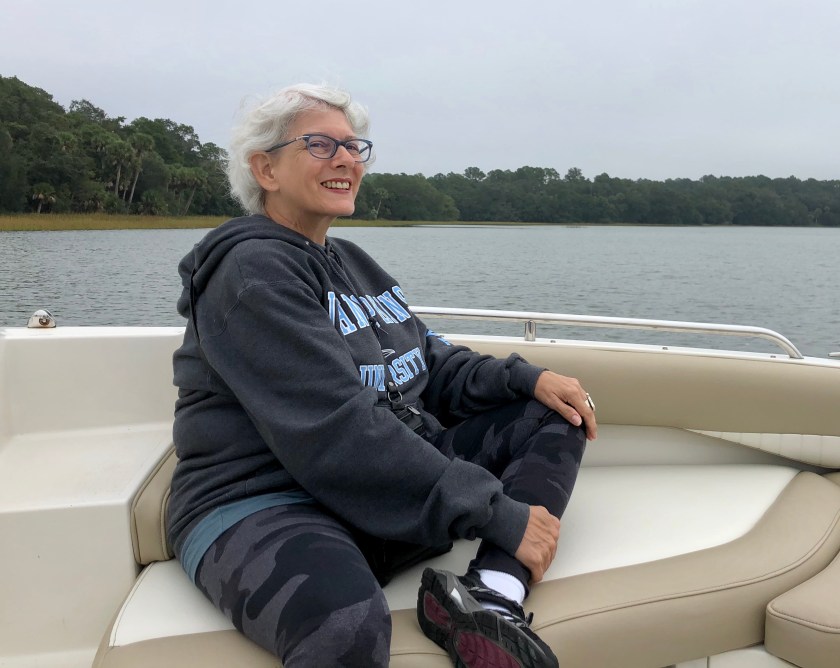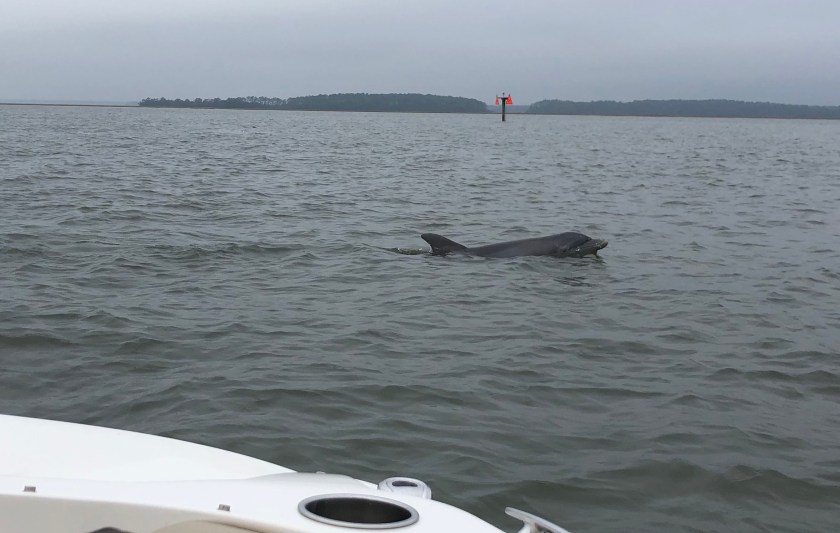 Admission: we were not on a sailboat, we were on a ski boat, but nonetheless, Anita and I had a glorious time with Boat Captain Scott out on the waters surrounding Hilton Head Island yesterday. We spent two action-packed hours as our guide took us to beautiful spots filled with birds and dolphins. It was a very high tide, so we could get into all sorts of tight spots, too.