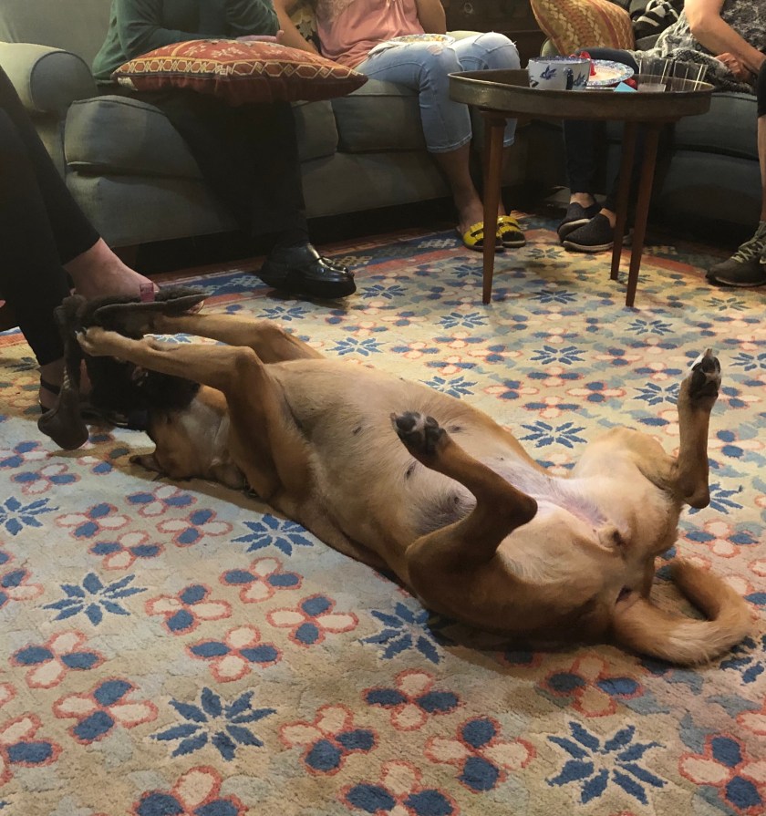 No, book club was not THAT interesting last night. That bottle wasn’t open yet, and I only had half a glass. (Little aside, last night we discussed “the dog book,” as we call it, and the dogs at our hostess, Ruth’s, house decided they MUST put on a show of dog behavior for us. I enjoyed it so much, even if it probably didn’t amuse everyone as much.)