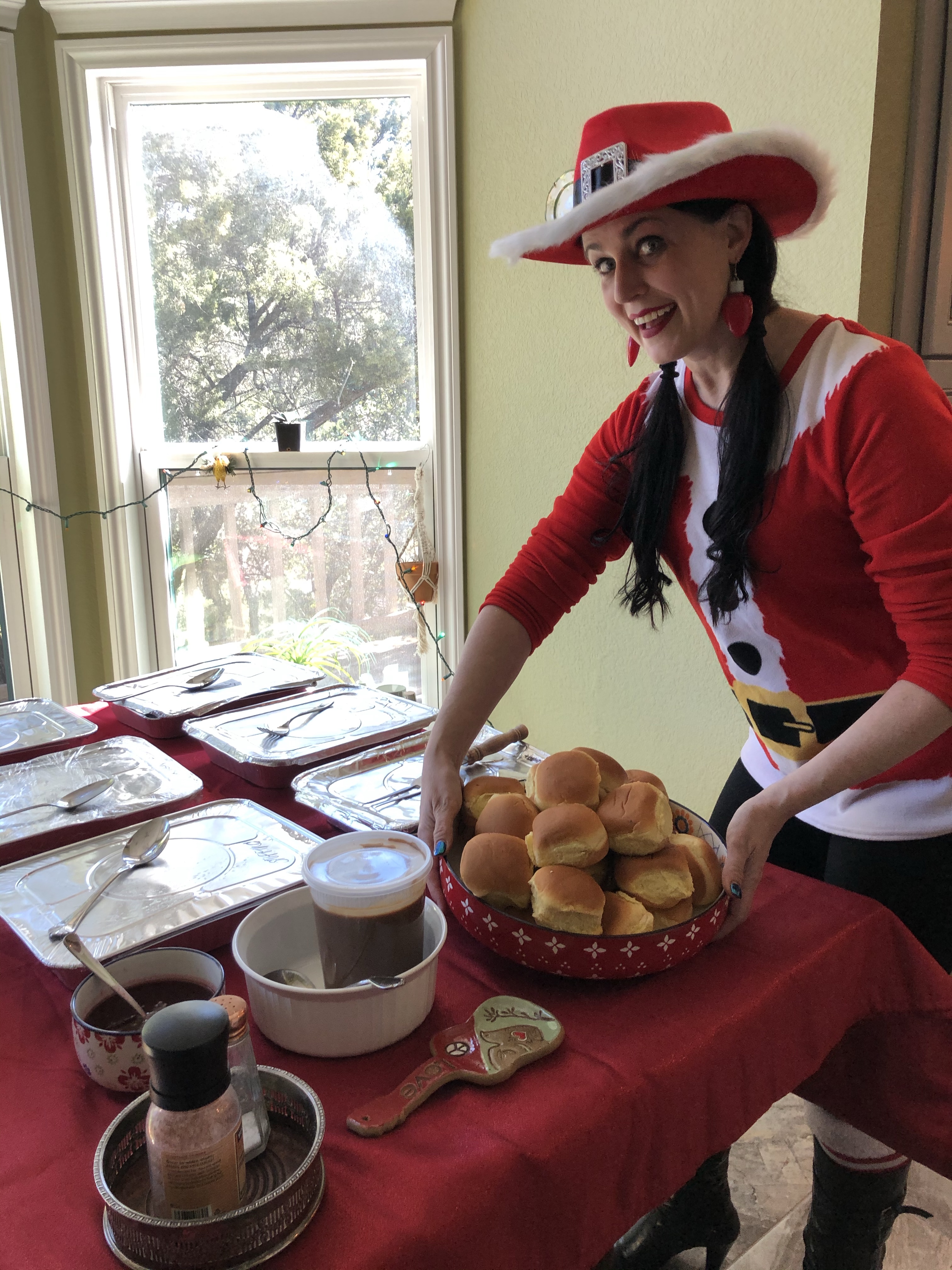 It helps to have a pro party planner on the team. Maggie chose a great caterer who brought a traditional holiday meal to the house, while we did appetizers and desserts. I picked out decor items. It ended up so pretty!