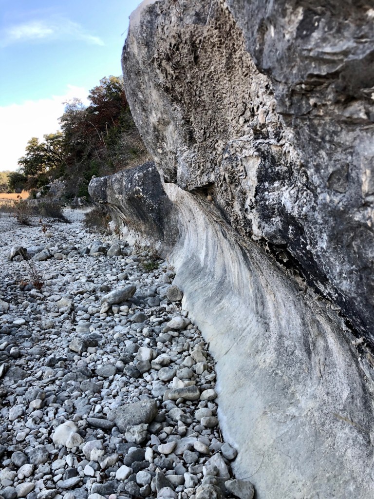 I wonder where this river’s water comes from, because all around here many of the creeks and rivers have a good amount of water in them. I finally looked it up, and this is the Medina River. I don’t think the whole thing is dry, because we went over it before when we were driving around. On the other hand, it’s a good chance to look at the river bed formation here, since most of them are usually flowing away, though mostly very shallow.