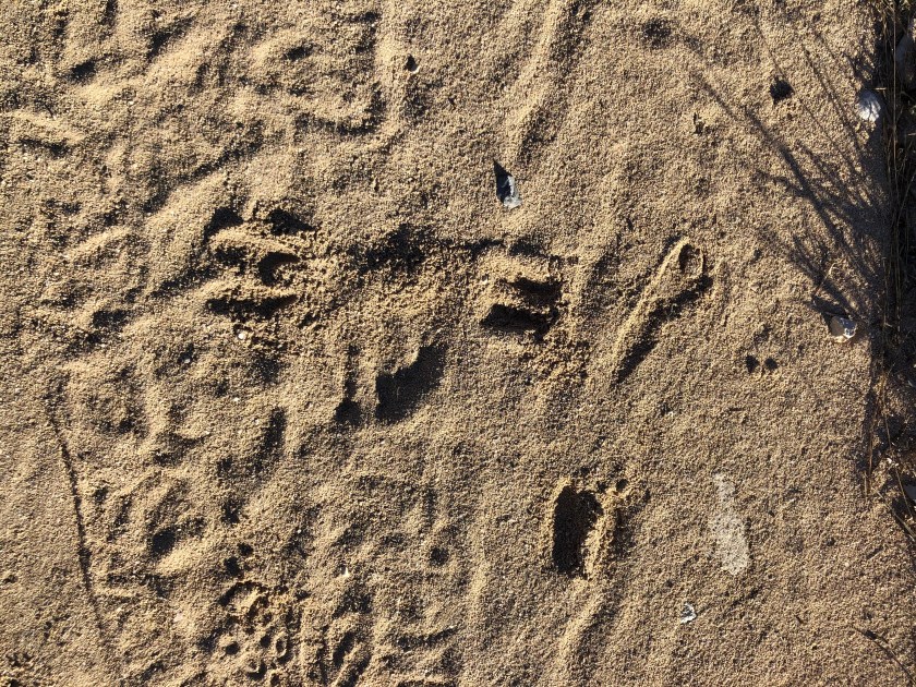 At least the lack of rain preserved some footprints. I saw a dog/coyote, a bunny, and deer. What I thought were bird tracks was a tire tread. Sigh. Beauty is everywhere, that’s for sure, even in a dry river bed!