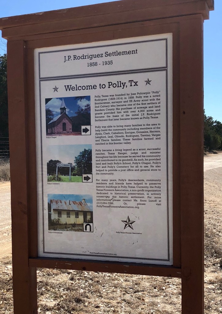 We eventually ended up at the site of historic Polly, Texas, a very early settlement that many amenities. Some of the families that the sign talks about are the names on the huge ranches now. Below are some pictures of the cemetery that’s still there, courtesy of our friendly maintenance guy!