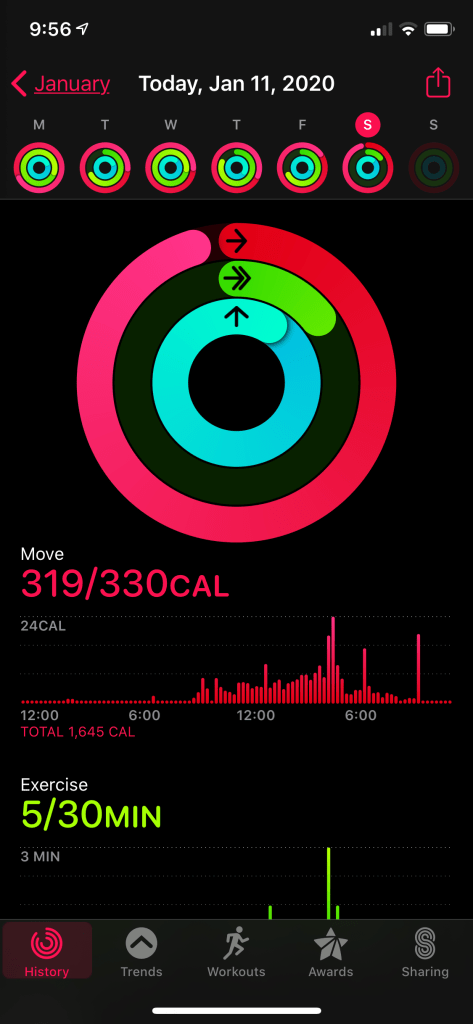 There’s so much going on here at the ranch on weekends, that on days like today and yesterday, I realize that, whoops, I’m not getting my exercise numbers. And I really, really want to hit those movement goals and get at least 20 minutes (preferably 30) of aerobic exercise a day. I just want to be healthy.
