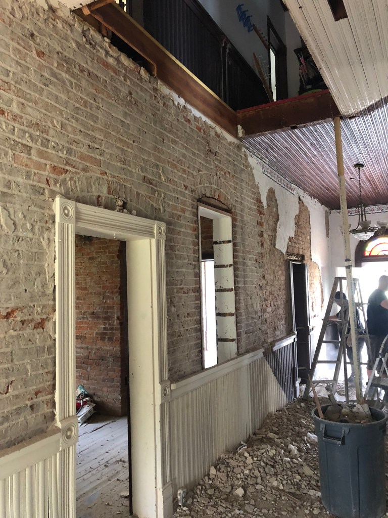 Hey, thanks for asking. I guess Lee hasn’t been over there to take pictures, but Cody did send me one last night. They took the plaster off one of the entry hallways. Oh my, that looks nice.