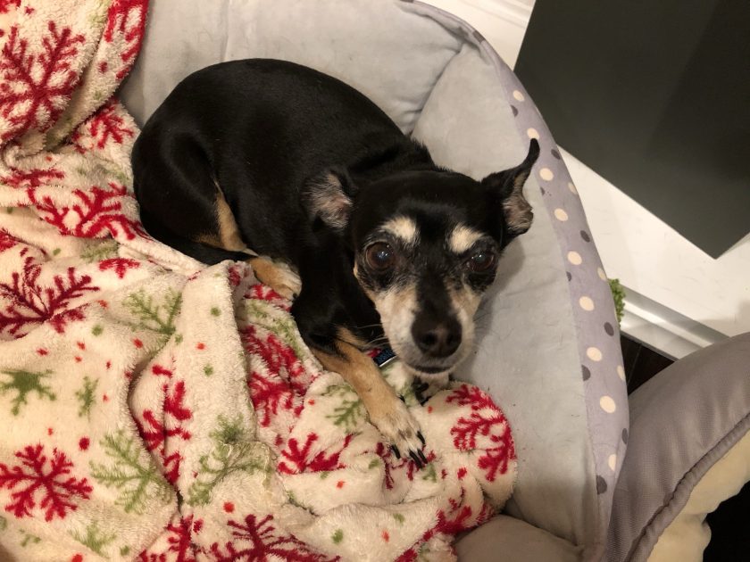 The answer is…Pickle! Anita got to enjoy the sleepless night I had Tuesday night, along with plenty of up-chucking and wriggling. Poor Anita and Pickle.