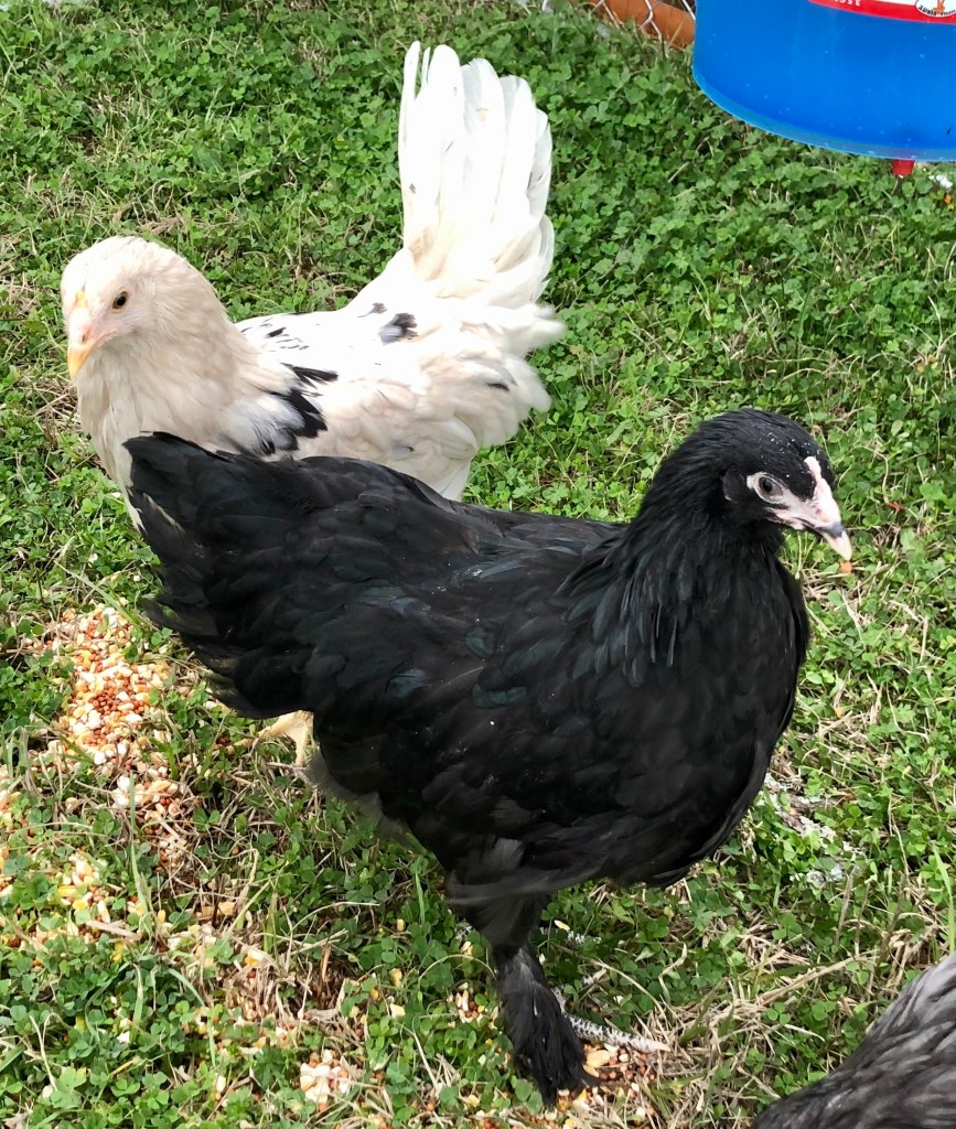 The young hens went straight to eating when we put them in the pen. They seemed to understand how the water dispenser worked, too.