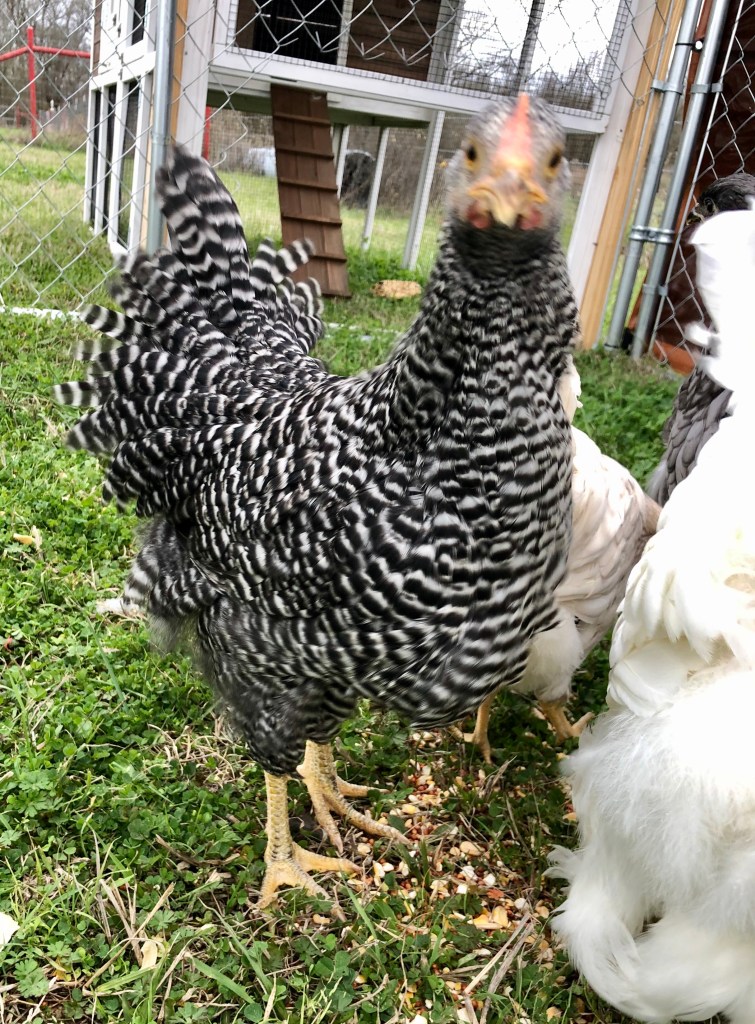 You may remember that last year, after I’d lost a lot of chickens to an owl, I went and got seven new ones at Bird and Bee Farm. I was surprised to realize that was almost a year ago. Things continued to get my poor birds, and now I have only three left, Buffy and the reds, Big and Little.