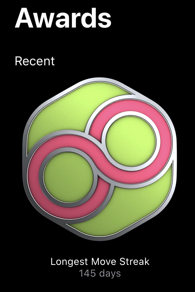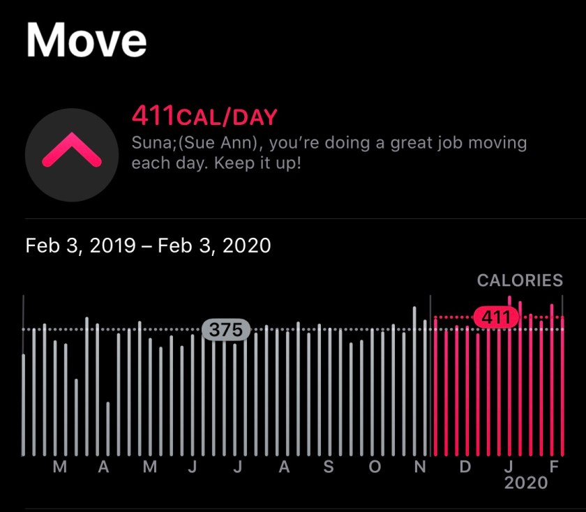 This shows I haven’t missed my movement goal since I started trying to do better, and that includes raising my goal in December.