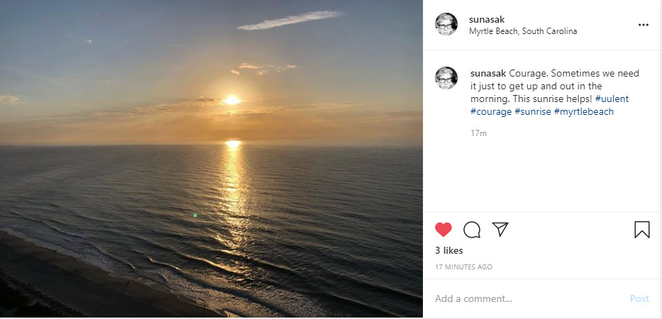 We have courage for the UU Lent word today. I think we’re all more courageous than we know. Life is challenging. Sometimes we wonder if it’s the most challenging time to be alive, like ever, but no, I think it’s always been hard to be human. It’s always taken courage to face each day.