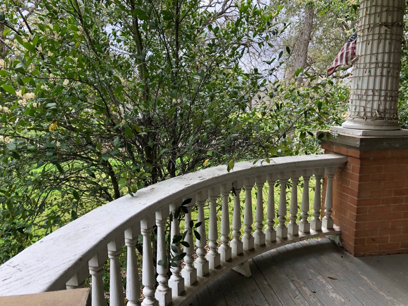 We drove to the place, and I could see what Kathleen was talking about. Even having been unoccupied for a few years and a bit overgrown in foliage, you can see it’s a beautiful home. There are two main entrances and a gorgeous wrap-around porch, with grounds that can be turned back into a showplace very easily.