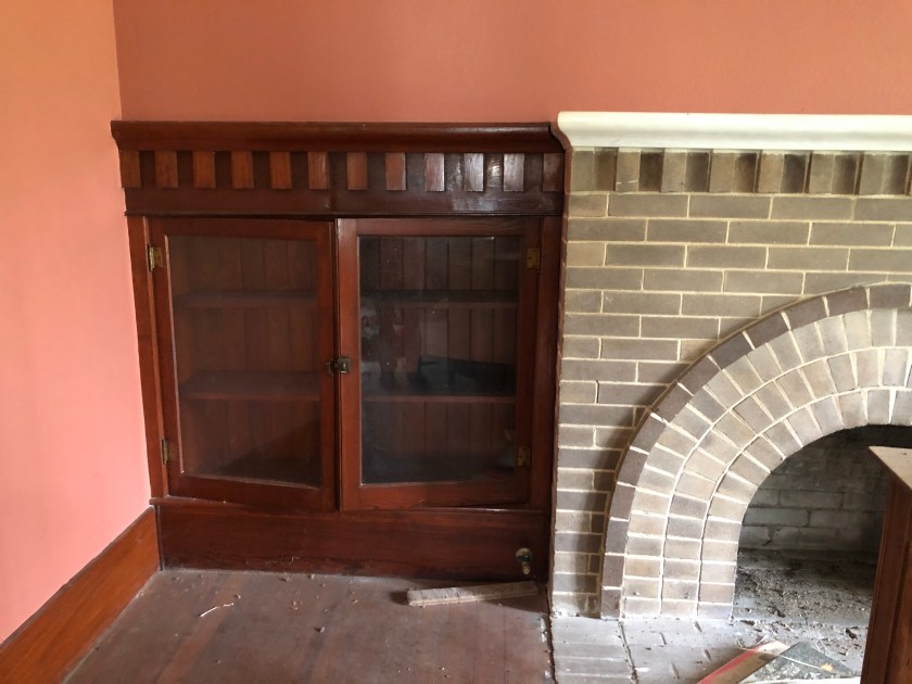 Lee and I got back in the car and joined them. Oh my gosh. The most recent owner and his wife had restored the whole place other than the kitchen and bathrooms. It’s all painted in Victorian colors, and the woodwork still gleams.