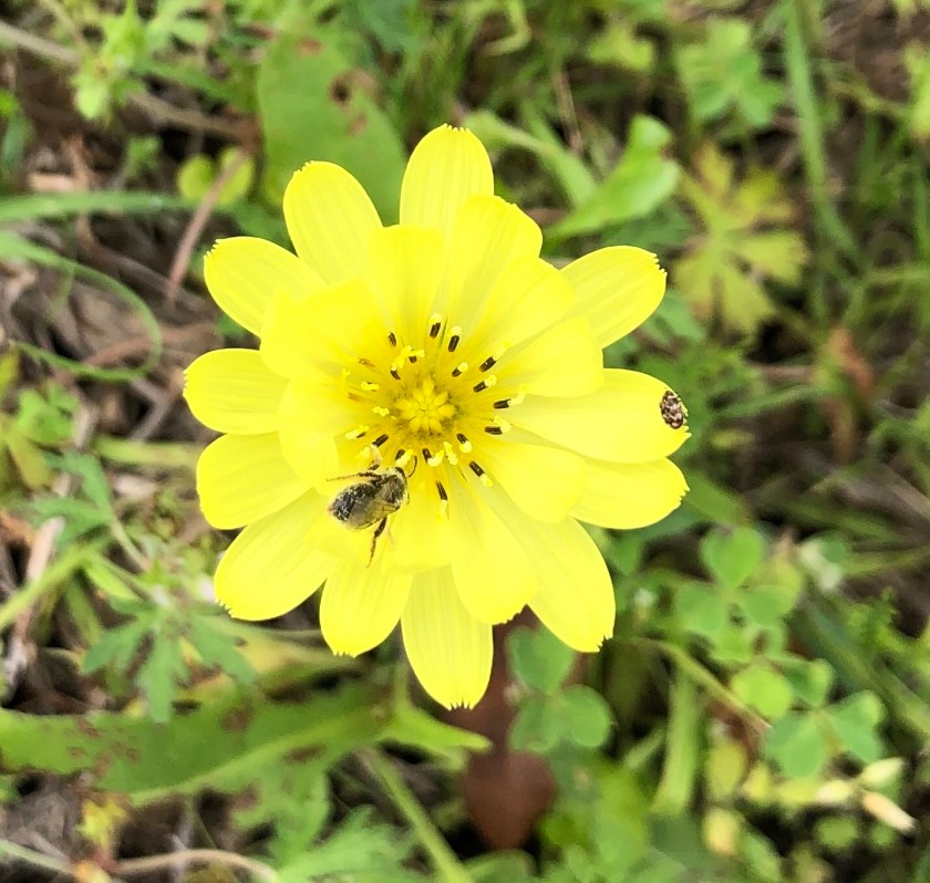Pyrrhopappus pauciflorus. Plus a tiny wasp and tinier beetle.